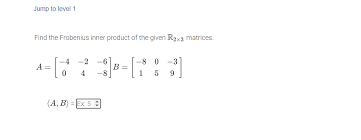 The frobenius norm of a matrix a ∈ rn×n is defined as kakf = √ trata. Let v = m2(c), equipped with the frobenius inner product, and let a and b be the matrices given below. Jtebert commented on apr 21, 2017. In mathematics, matrix multiplication is a binary operation that takes a pair of matrices, and produces another matrix. About press copyright contact us creators advertise developers terms privacy policy & safety how youtube works test new features press copyright contact us creators. ( ) 2) distance of two. In this inner product space, the cone of symmetric and positive definite (spd) matrices has a rich. Frobenius inner product becomes the standard inner product. In mathematics, it is indicated as a:b. I want to find the matrix m that maximizes the elementwise inner product of a and m ( frobenius inner product. Count the number of matrices represented by an array or a. In other words the sum of (* a (conjugate b)) is computed where a runs over the entries in m and b runs over the corresponding entries in n. On the other hand, matrices are arrays of numbers, so there is no unique way to define the.